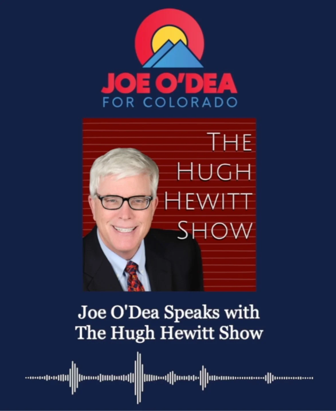 "When you get your ballot turn it in right away, vote for Joe O'Dea," said Hugh Hewitt. "Do not be fooled by the Democrats, Joe O'Dea can beat Michael Bennet in the fall."